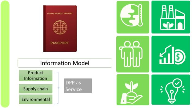 The information model of the Digital Product Passport essentially contains information on the identification and classification of the product, its composition, materials, ingredients and their origin, information on use and lifetime, as well as on disposal and recycling.