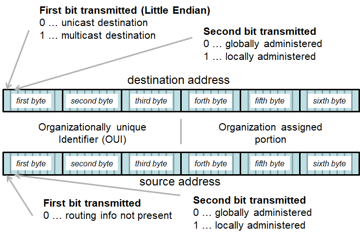 Figure 2: Structure of the Ethernet (MAC) destination and source addresses