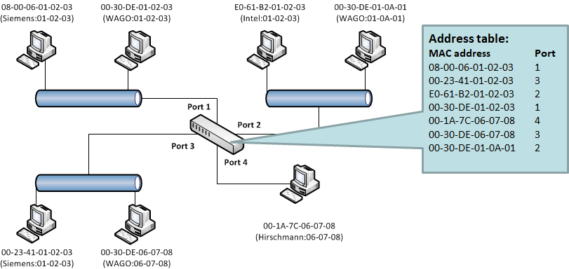 Using switches, the Ethernet subnet is splitted into several point-to-point connections, whereas each connection represents two interconnected ports – either between an end station and a switch, or between two switches. This allows for scaling the network by connecting additional switches.